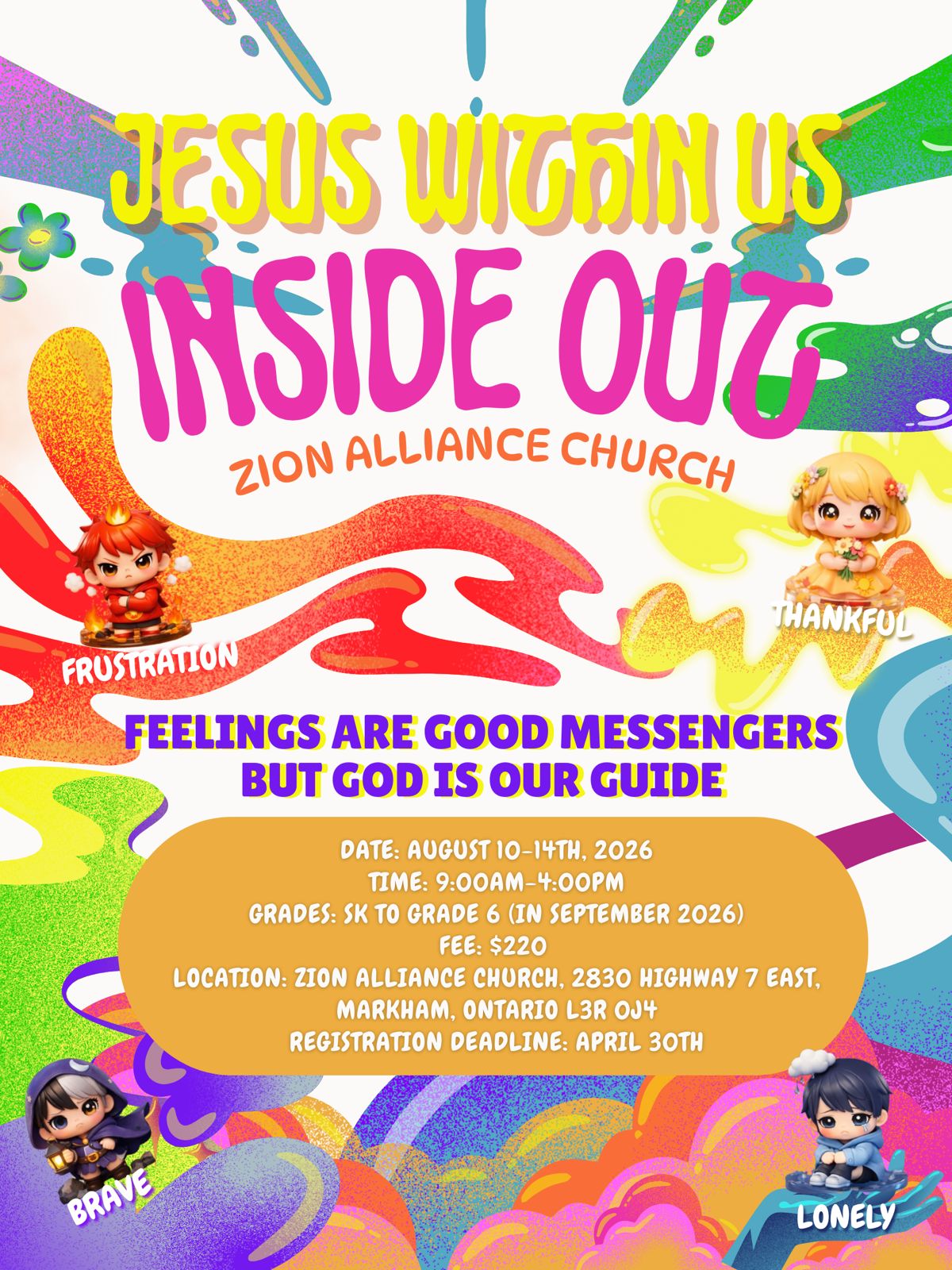 今年營會主題為「Jesus Within Us, Inside Out」。在營會中,孩子們將透過聖經去學習情緒的認識,明白耶穌如何幫助我們建立敬虔而健康的屬靈生命——從內心開始,活出生命。透過聖經故事、敬拜、遊戲、手工及小組活動,孩子們將學習辨識自己的情緒,以信心作出回應,並在日常生活中活出上帝的愛。
